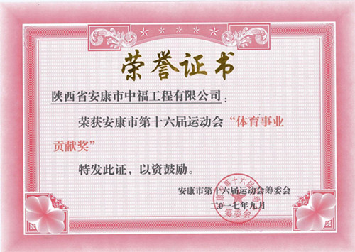 公司獲安康市第十六屆運動會“體育事業貢獻獎”