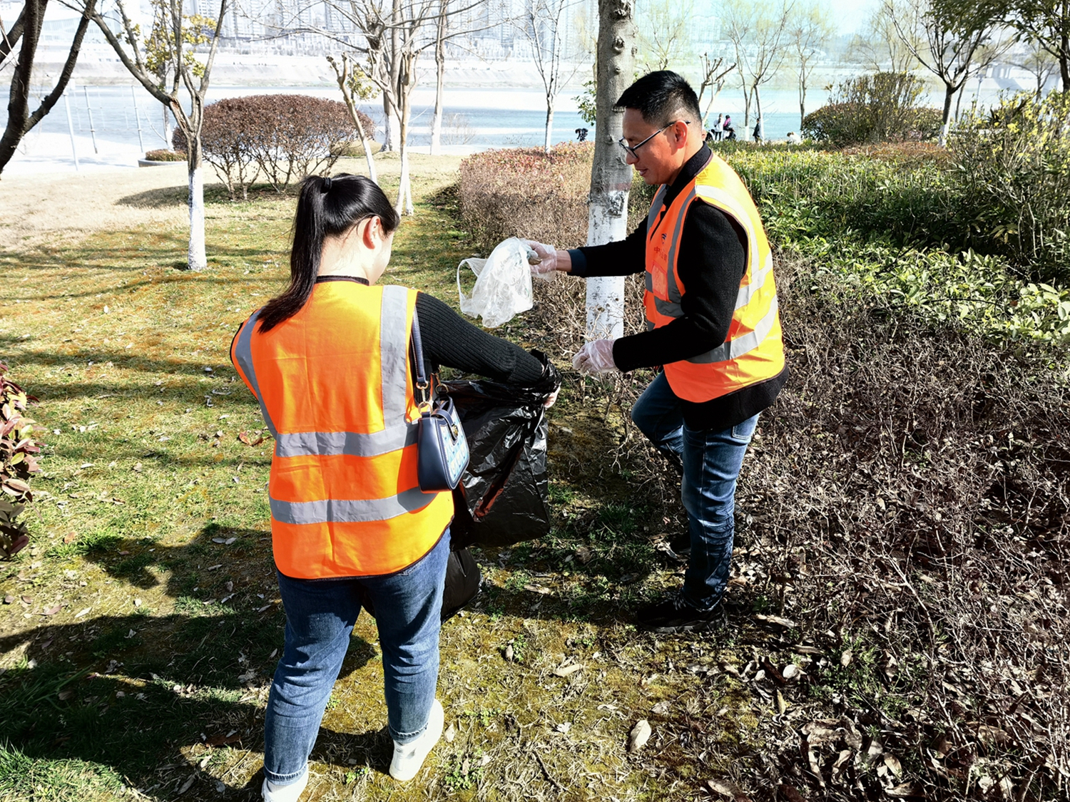 歡聲笑語之后,到了今天活動最重要的一個環節─撿拾白色垃圾。在胡總和徐書記的安排下,大家紛紛穿上勞動服裝,手持工具,穿梭在公園的各個角落尋找白色垃圾,雖然上午的天氣溫度很高,但是大家并沒有感到炎熱和疲憊,一絲不茍地完成著今天的使命。