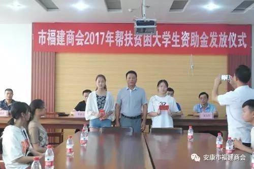 8月28日上午,市福建商會(huì)舉行2017年幫扶貧困大學(xué)生資助金發(fā)放儀式,經(jīng)調(diào)查摸底,決定對(duì)7名貧困大學(xué)生進(jìn)行扶持幫助,每人資助兩千元,合計(jì)資金一萬(wàn)四千元,以確保他們能夠秋季順利入學(xué)。商會(huì)副會(huì)長(zhǎng)兼秘書(shū)長(zhǎng)陳信舉代表商會(huì)致辭,副會(huì)長(zhǎng)張揚(yáng)達(dá)代表商會(huì)接受商會(huì)扶貧聯(lián)系村—漢濱區(qū)晏壩鎮(zhèn)胡家溝村贈(zèng)送的錦旗,商會(huì)辦公室主任謝波主持了資助金發(fā)放儀式。