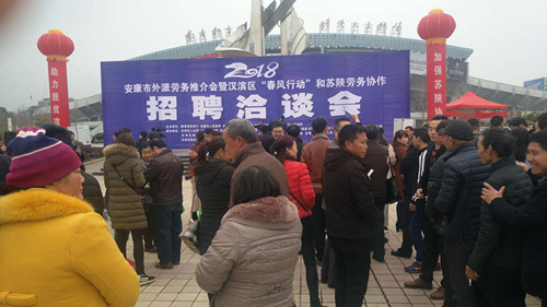 ![]() “就業何必去遠方,家鄉就是好地方”。2月28日至29日,安康市體育廣場人頭攢動,由陜西省商務廳、安康市人民政府、安康市商務局、安康市人社局、常州市人社局、安康市漢濱區人民政府主辦的2018年“春風行動”企業用工專場招聘會成功舉辦。